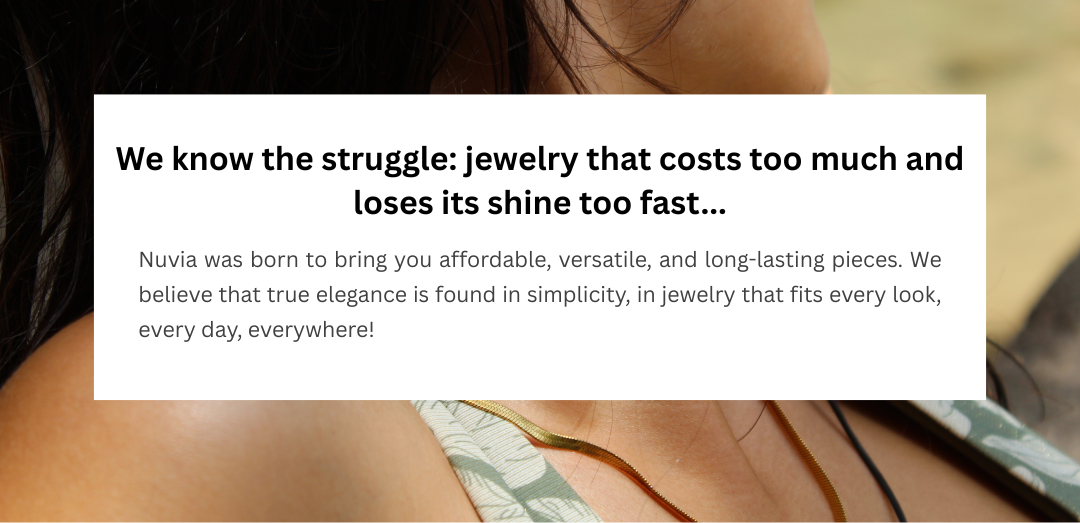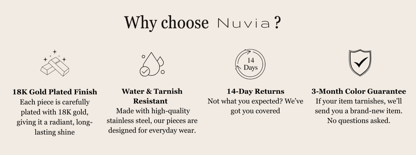 Nuvia was born to bring you affordable, versatile, and long-lasting pieces. We believe that true elegance is found in simplicity, in jewelry that fits every look, every day, everywhere!