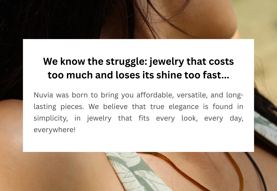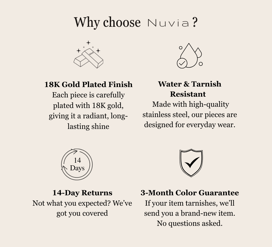 Nuvia was born to bring you affordable, versatile, and long-lasting pieces. We believe that true elegance is found in simplicity, in jewelry that fits every look, every day, everywhere!